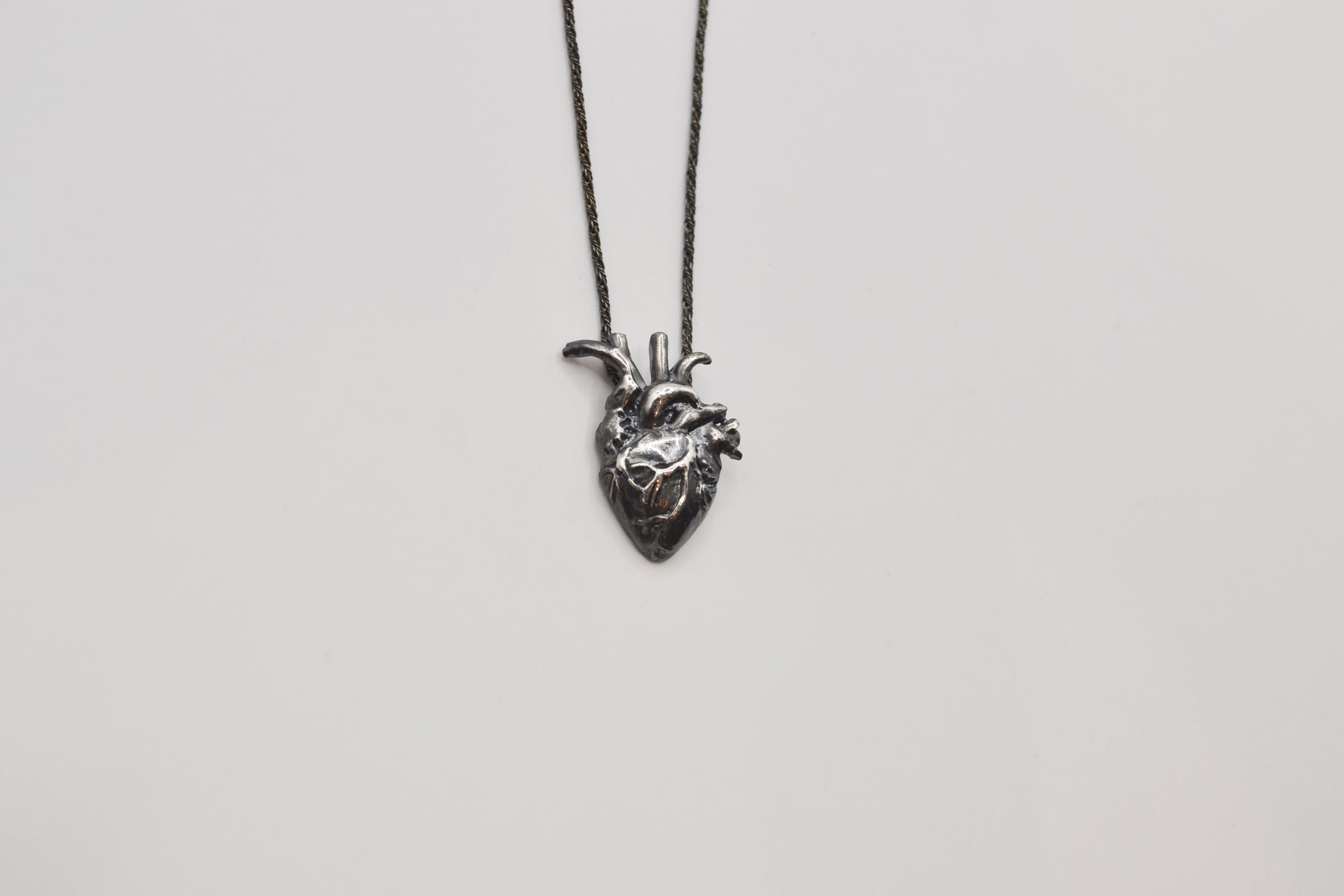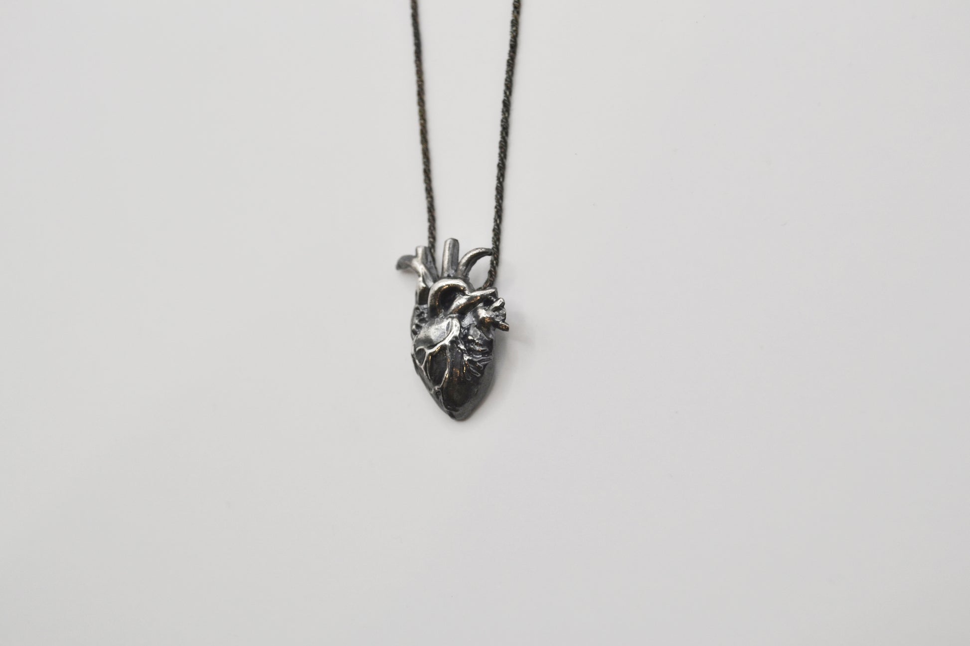 每一道血管的紋理,每一寸肌理的起伏都精細還原真實心臟的形態與質感垂墜在胸膛的時候彷彿貼著真正的心臟一起跳動著血管縱橫交錯表面細微的紋路強調肌肉的張力純銀的質感賦予作品冷冽而真實生命力-在獻祭系列中代表為了目的堅決奉獻生命的決心單獨配戴簡潔俐落疊戴奉獻套鏈構築更完整的敘事意象