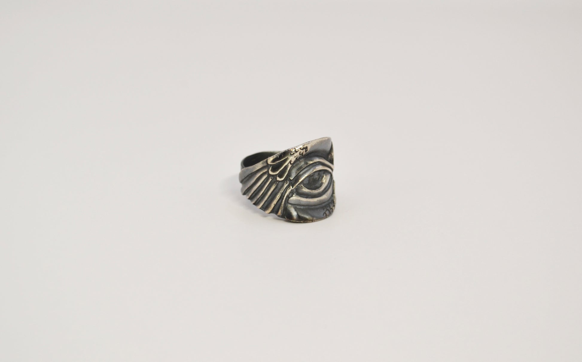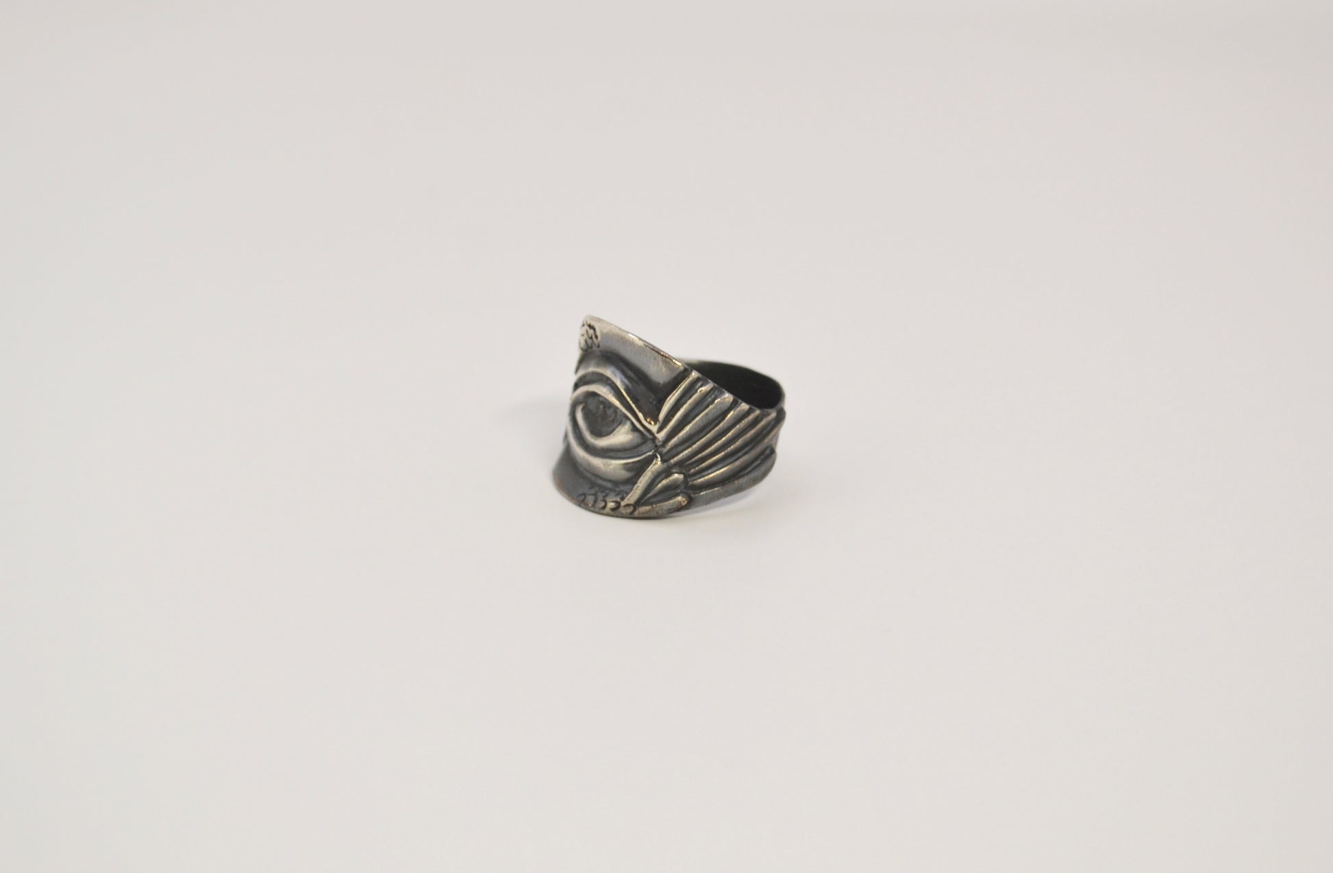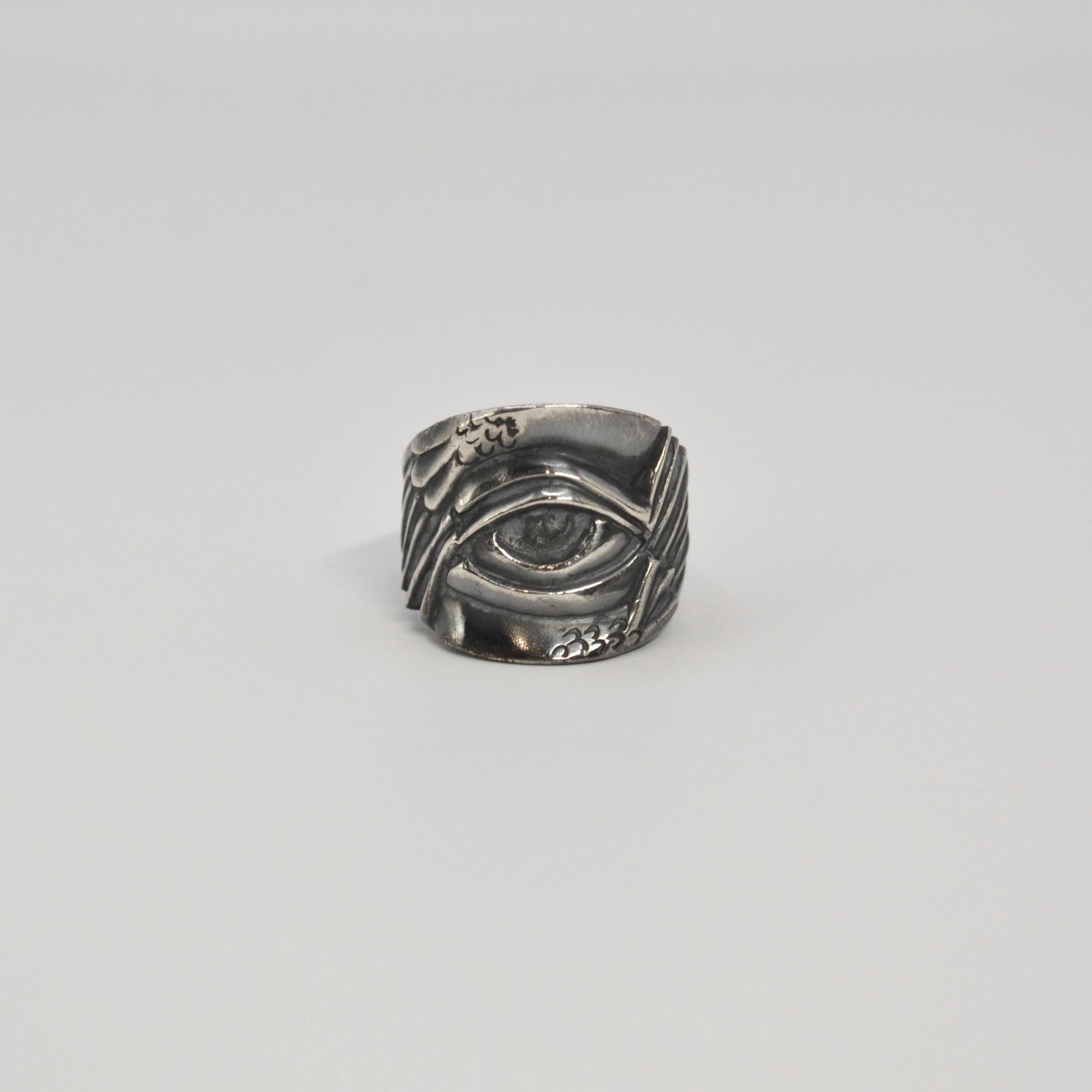 提取熾天使標誌性的六翼與中央眼睛以翅膀環繞眼睛的造型作為視覺核心-眼睛的輪廓深刻,線條精準不是人類的柔和神態而是以冷冽而銳利的刻畫手法翅膀羽毛上的秩序排列也呼應沒有溫度與情感的無機只保留純粹的凝視是遠遠審視萬物卻不帶一絲憐憫的眼眸-這款設計完整展現熾天使在我心中的形象是純粹的凝視與存在本身