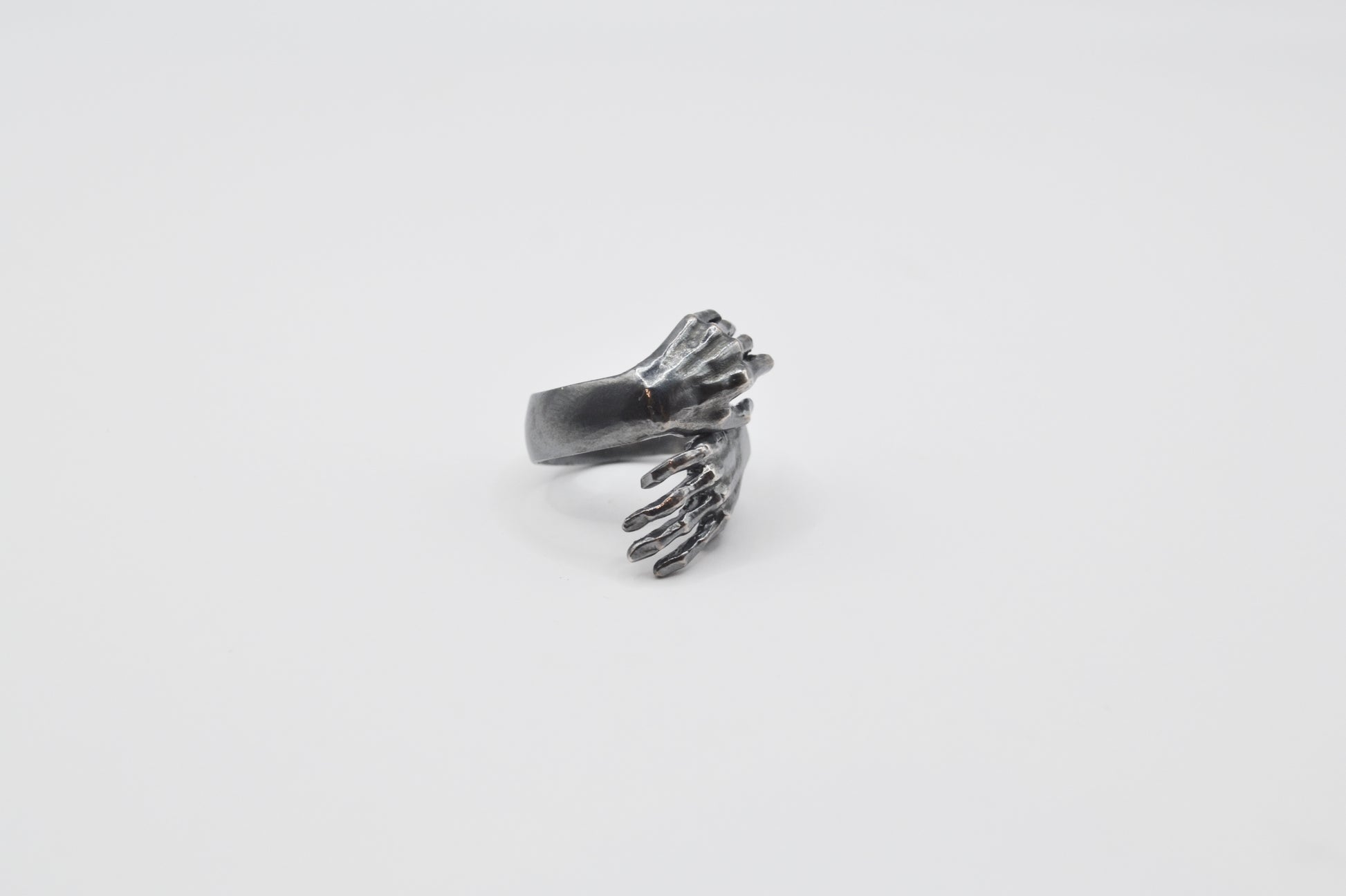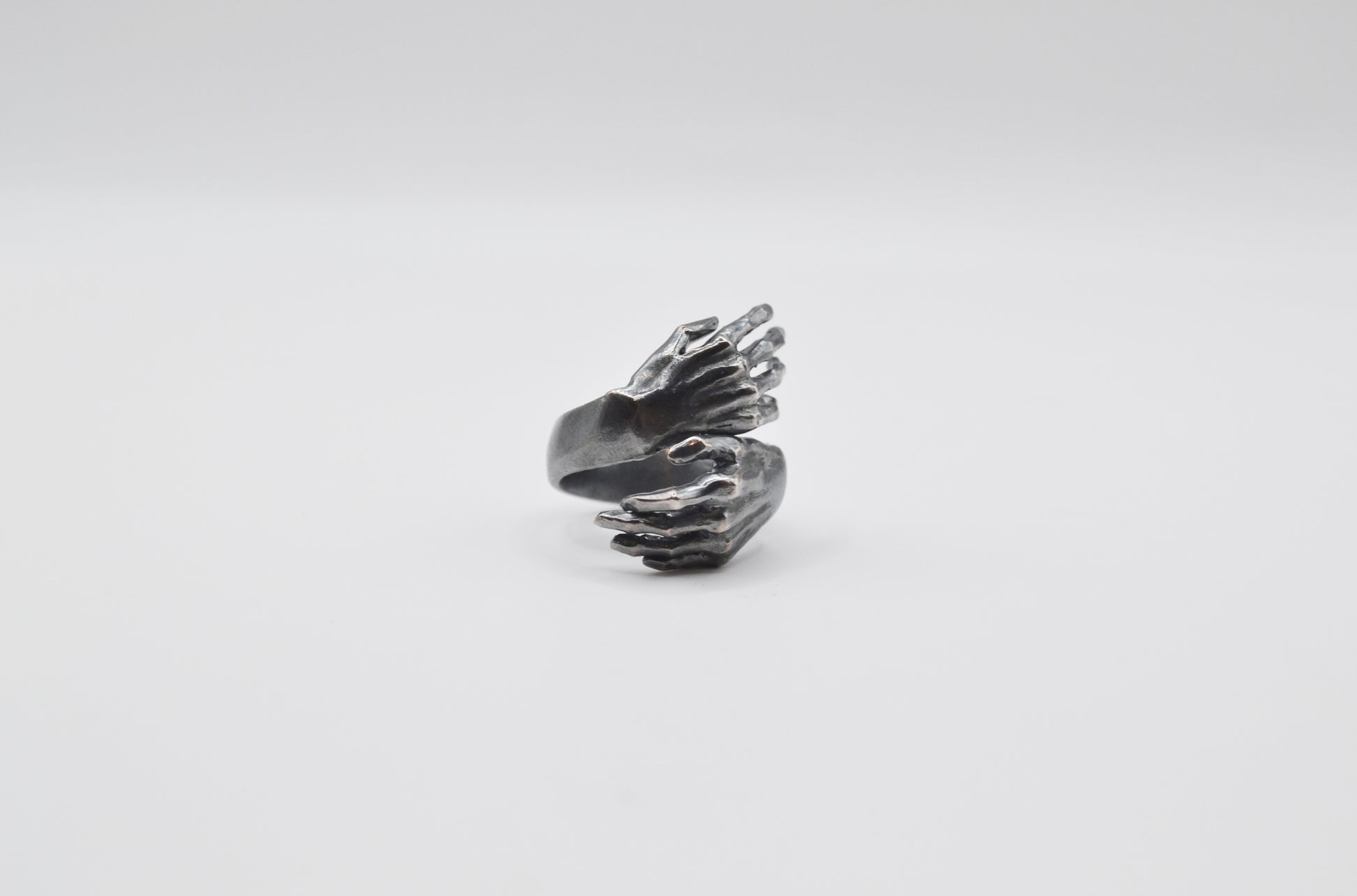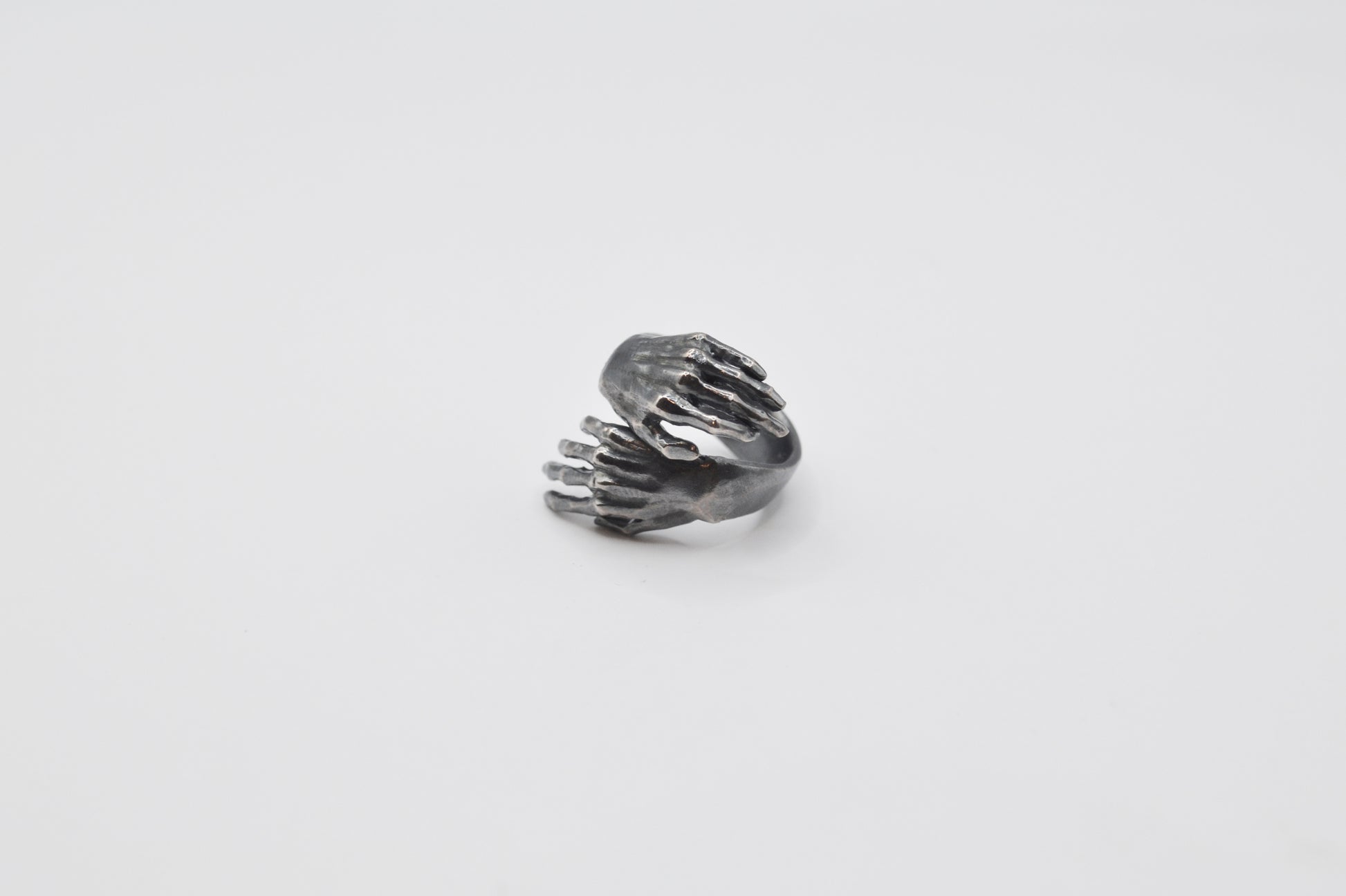 《指與掌系列-擁》只是單純一雙很寫實的骨節分明,修長又優美的手,抱住掌心留的空間是你輕輕掙開就能離去的克制放鬆而微微收攏的指尖在一起的時間輕輕擁抱著-戒面長度:30mm