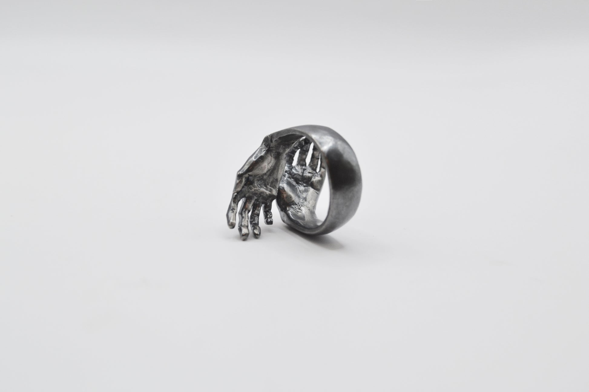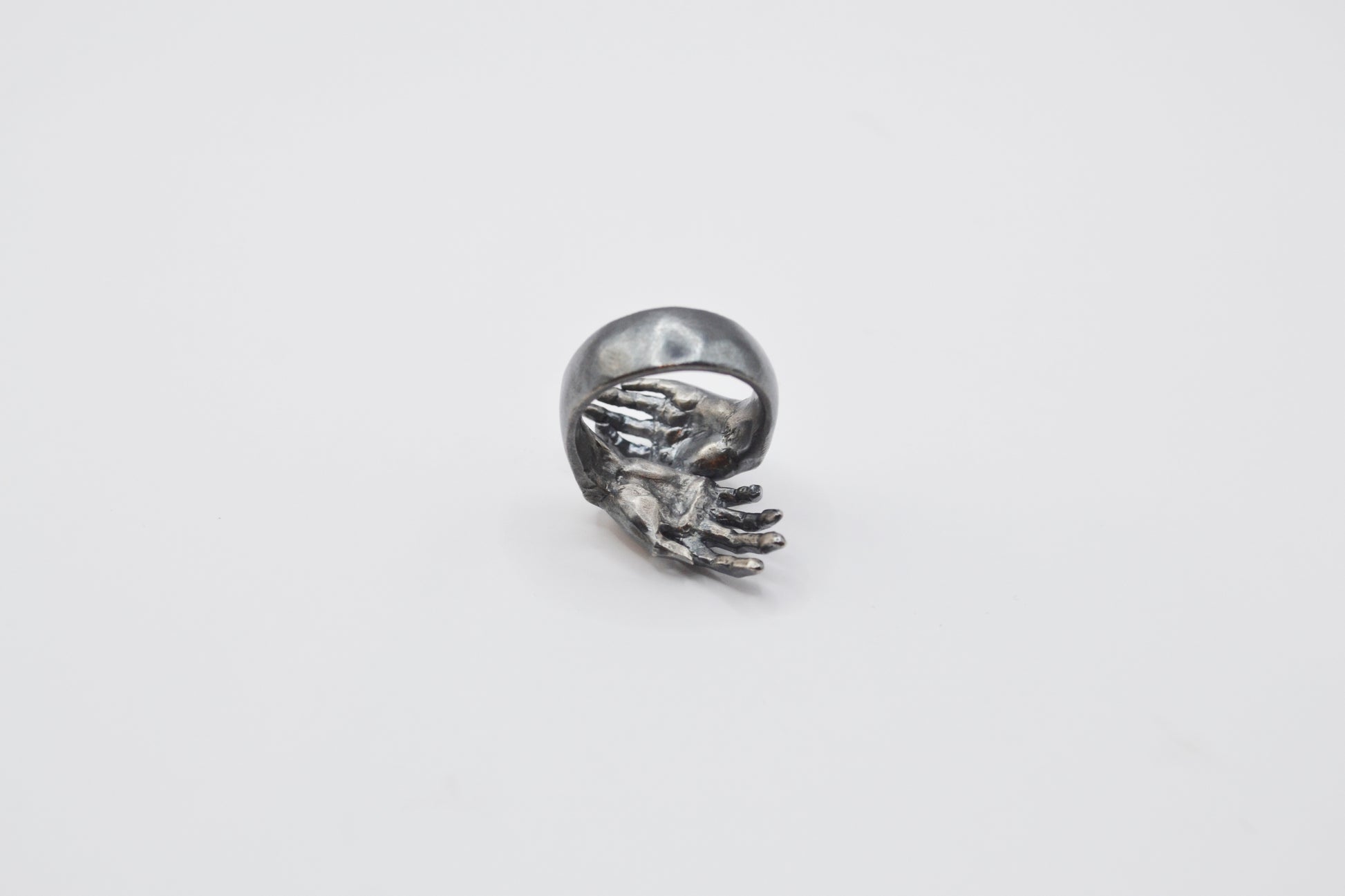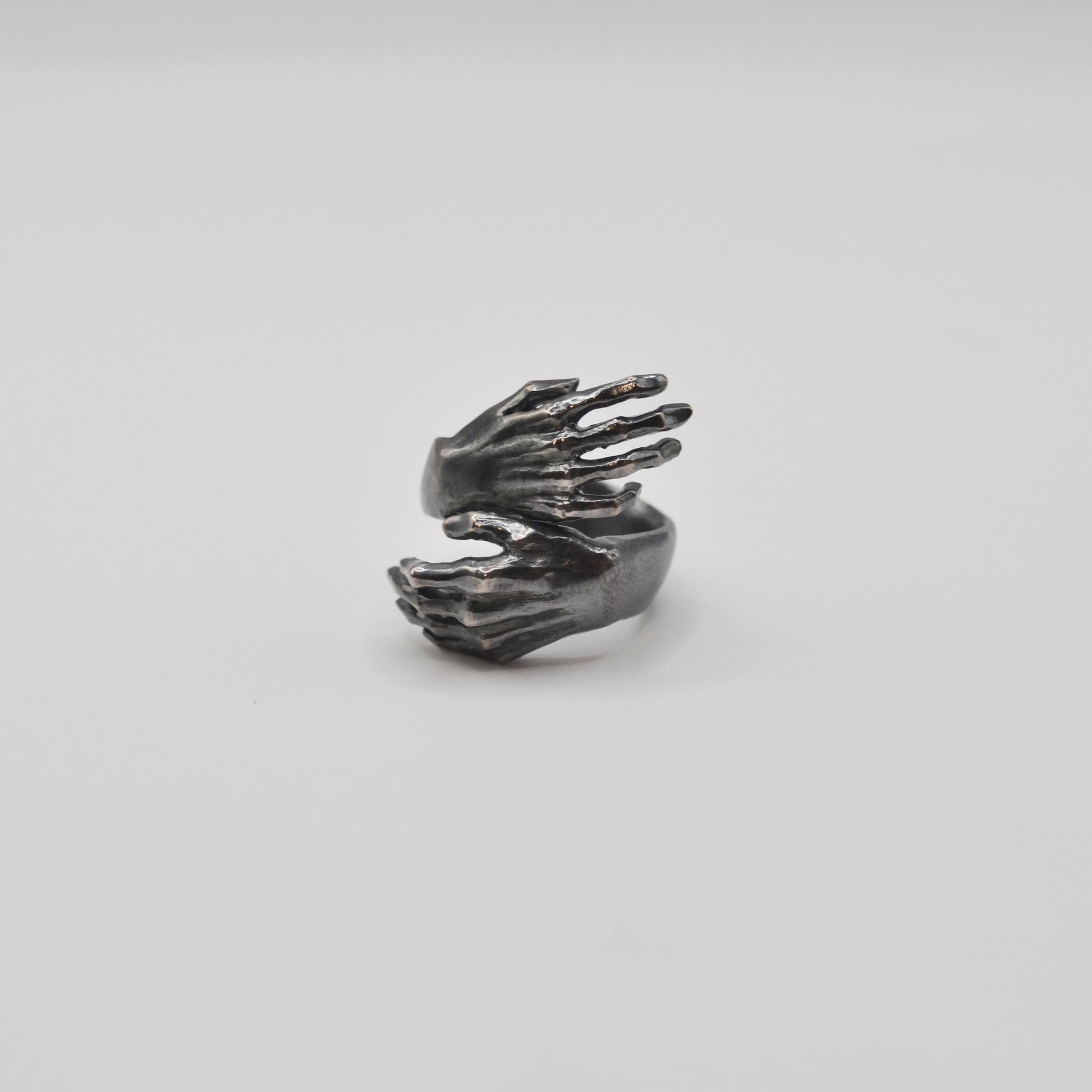 《指與掌系列-擁》只是單純一雙很寫實的骨節分明,修長又優美的手,抱住掌心留的空間是你輕輕掙開就能離去的克制放鬆而微微收攏的指尖在一起的時間輕輕擁抱著-戒面長度:30mm