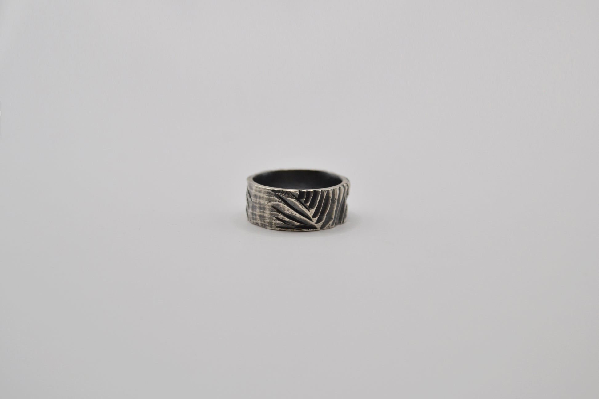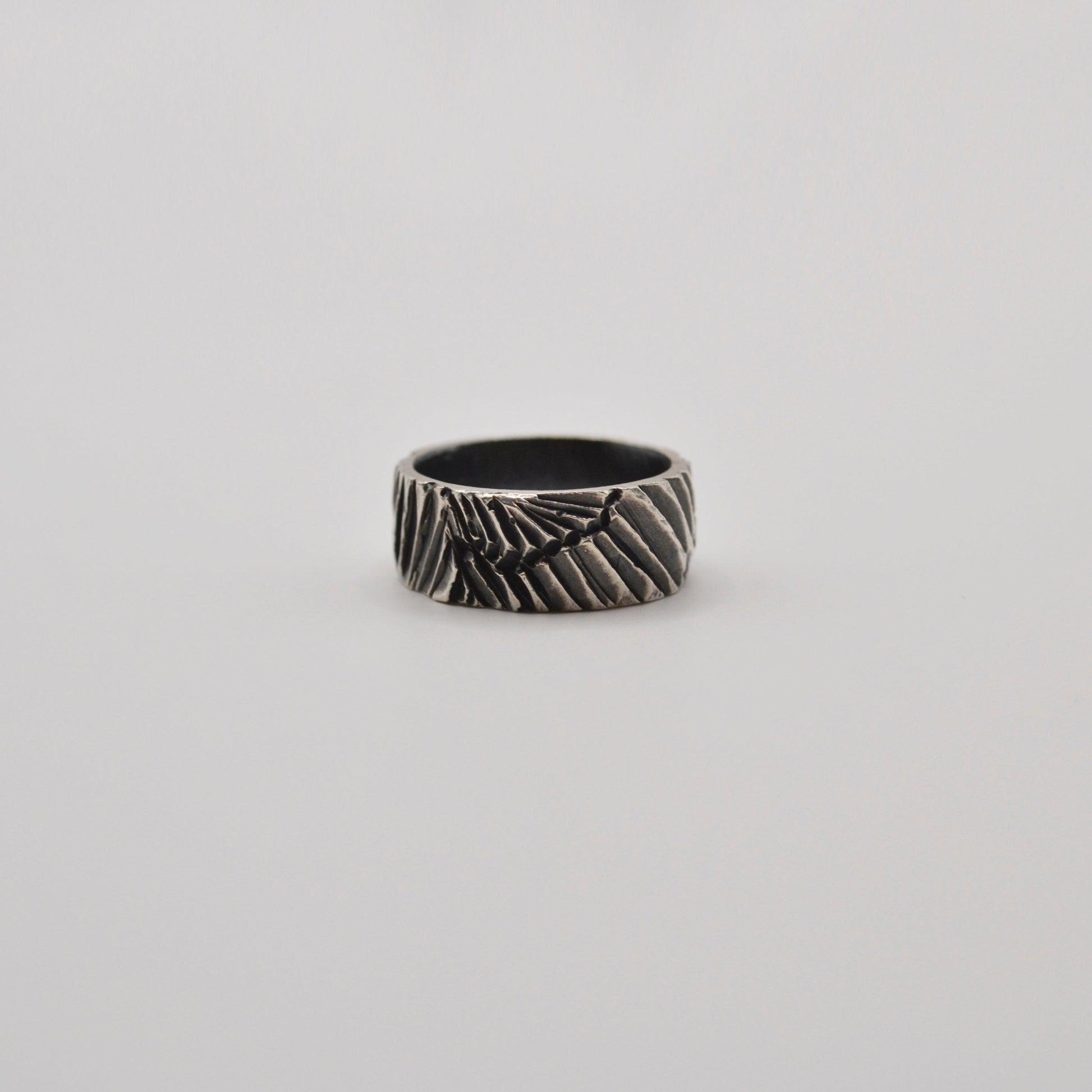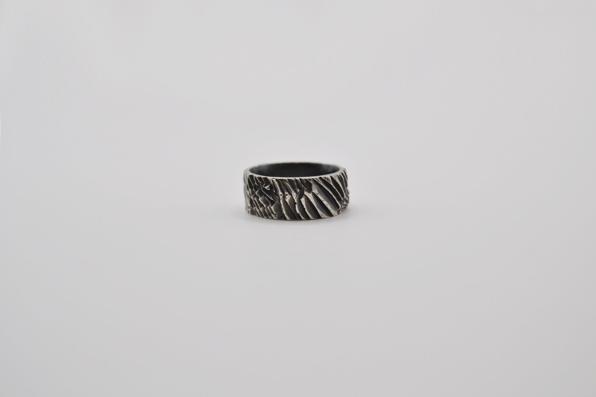 將翅膀羽毛紋理雕刻於寬版戒身錯落分布的線條形成具有辨識度的立體質感-戒指採用整體包覆式造型寬版設計帶來穩重的存在感適合簡約風格的日常搭配作為低調造型中的視覺焦點