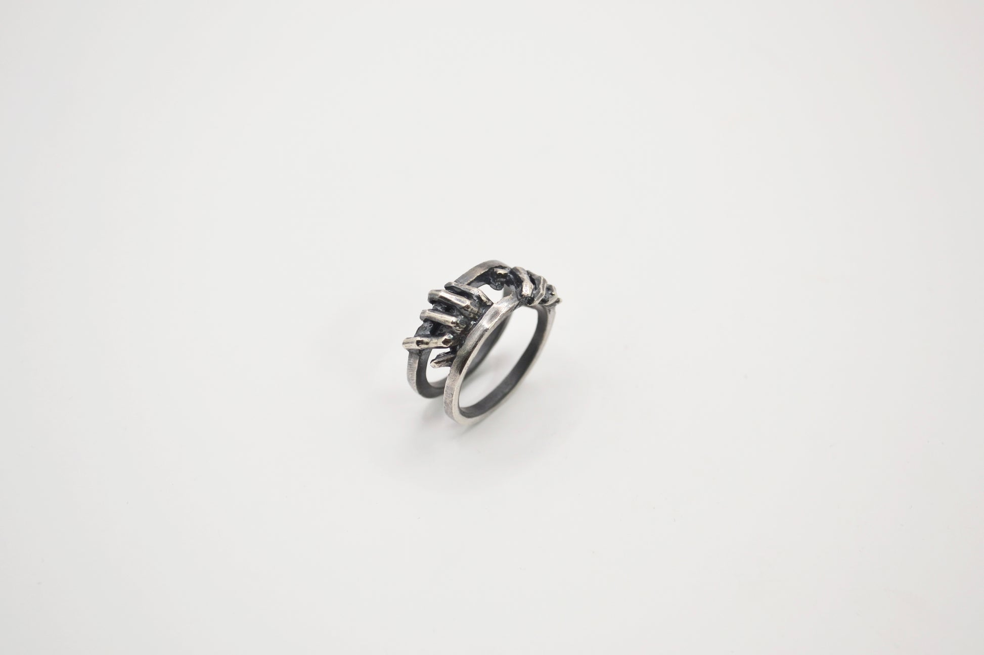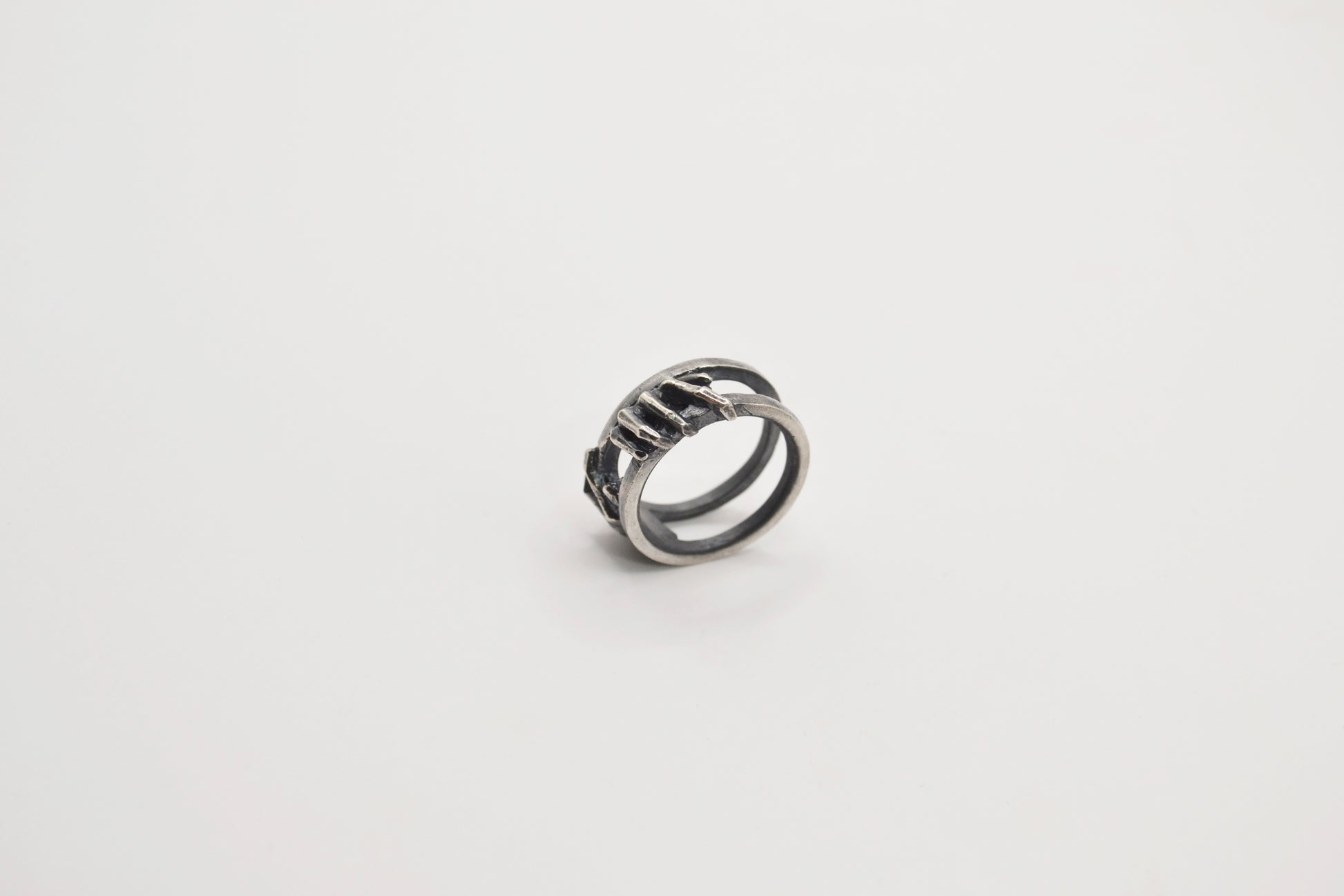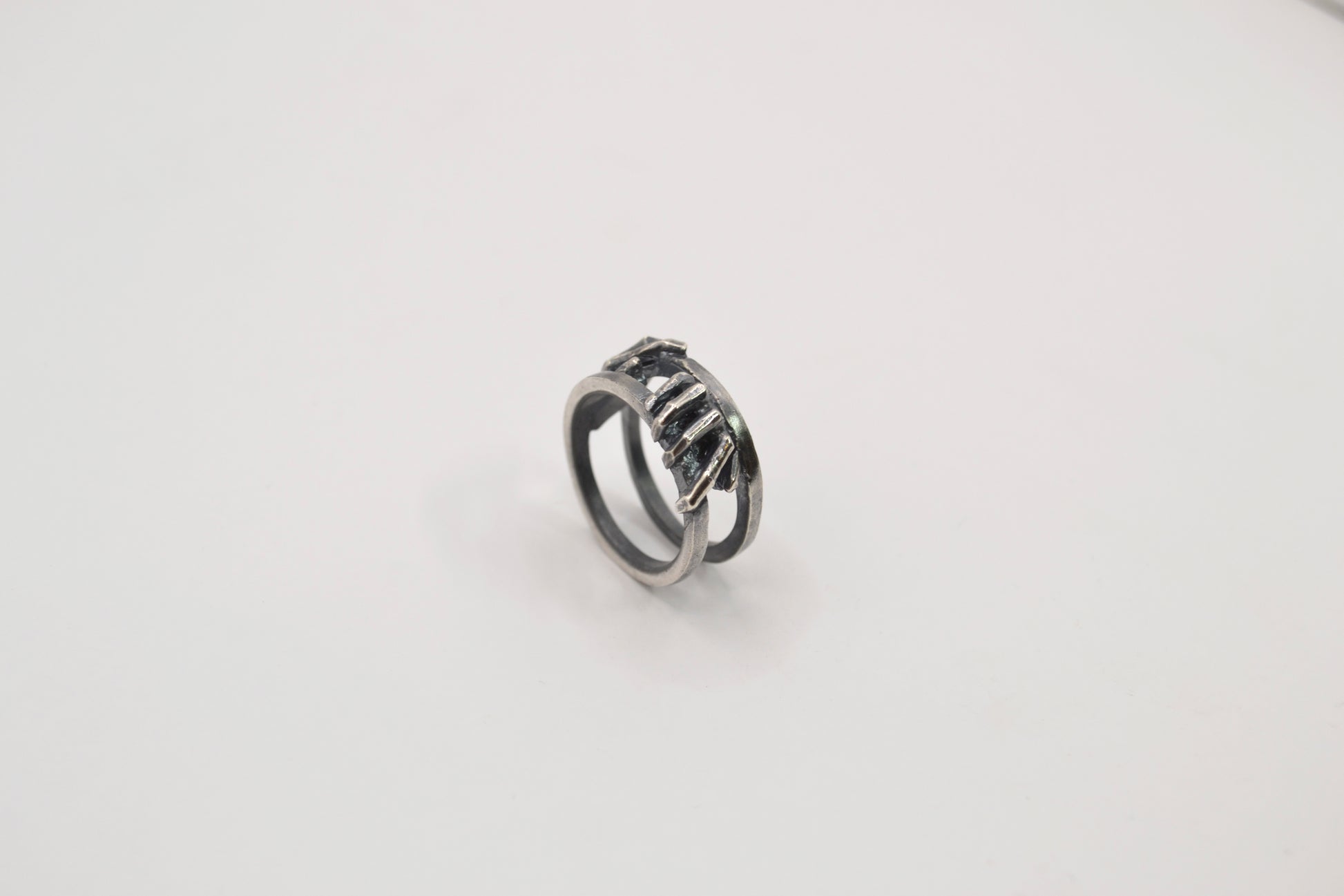 《指與掌系列-闔上》雙手將門扉緩緩闔上留下那道縫隙光影流動屏息的瞬間時間被延展,空間凝聚壓縮在張力之間-材質:925純銀戒面長度:6mm重量:8.5g